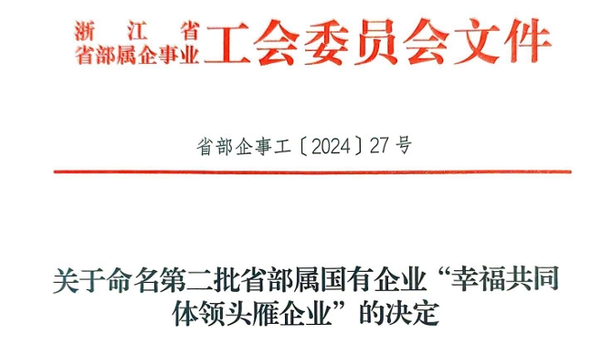 紫光环保荣获浙江省省部属国有企业“幸福共同体领头雁企业”