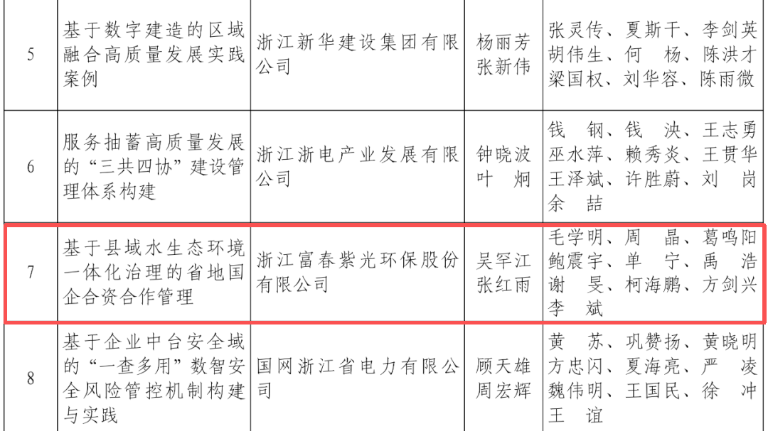 近日,紫光环保申报的《基于县域水生态环境一体化治理的省地国企合资合作管理》成果,荣获浙江省企业管理现代化创新成果二等奖。作为杭钢集团节能环保板块核心企业,面对县域环境治理困境和企业市场竞争压力,紫光环保积极响应杭钢集团、省国资委的战略部署以及浙江省推动城乡融合共同富裕的号召,创新提出和探索实践“省地国企合资合作”管理模式。