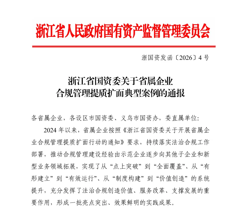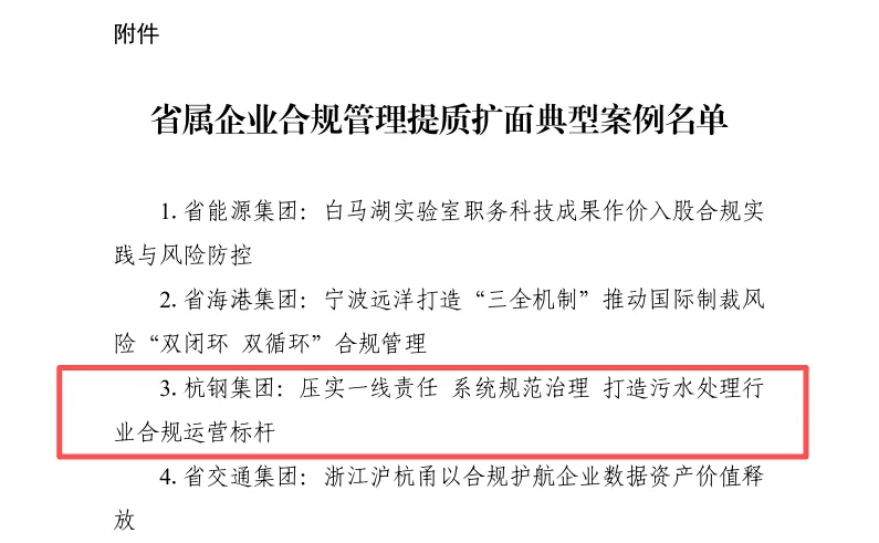 喜报!紫光环保提交案例成功入选浙江省省属企业合规管理提质扩面典型案例名单