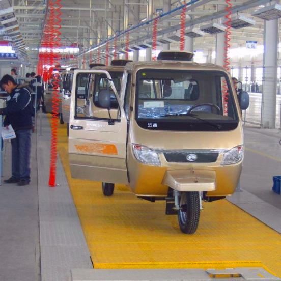 特点:承载的产品比较重,和生产线同步运行,可以实现产品的爬坡;生产的节拍不是很快;以链板面作为承载,可以实现产品的平稳输送。链板输送机是一种以标准链板为承载面,由马达减速机为动力传动的传统装置,链板输送机,由动力装置(电机)传动轴、滚筒、张紧装置、链轮、链条、轴承、润滑剂、链板等等构成,其中带动物料的舒适注意部分:链条,利用它的循环往复运动提供动力,金属板,作为输送过程中承载体,可以通过多列链板并行,使链板输送机做的很宽并形成差速,产生更大的效益,该链板线用作摩托车车架的组装。