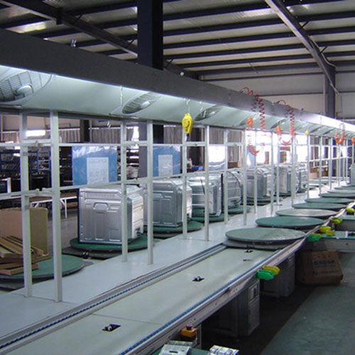 适用范围:自流式输送系统广泛地应用于各种电子电器、机电等行业生产线。倍速链流水线最常用的行业有:电脑显示器生产线、电脑主机生产线、笔记本电脑装配线、空调生产线、电视机装配线、微波炉装配线、打印机装配线、传真机装配线、音响功放生产线、发动机装配线。