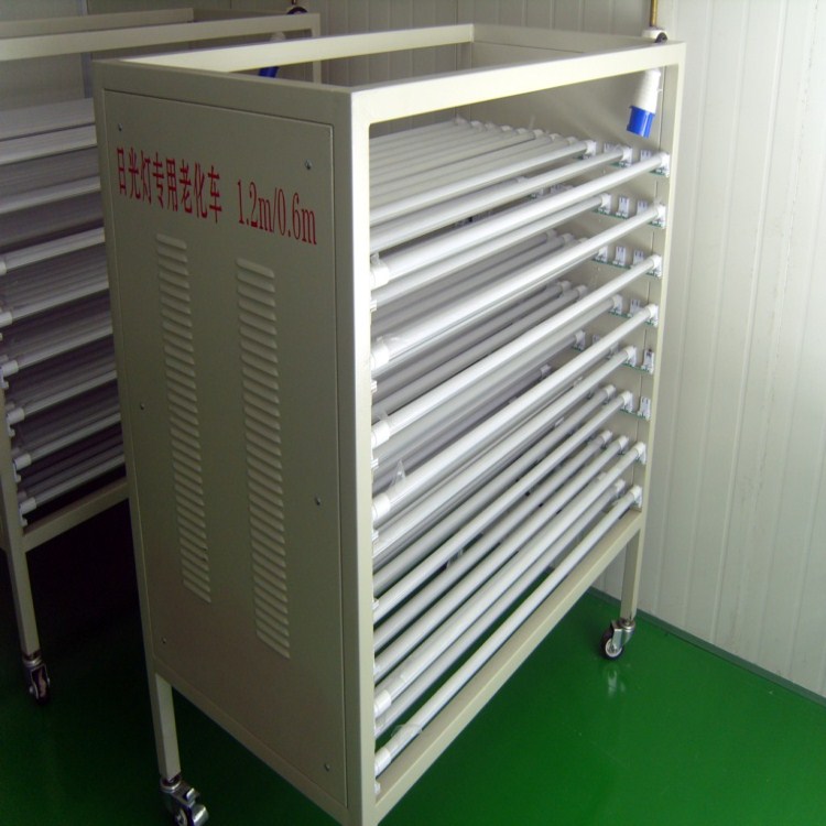 LED老化架长*宽*高L2000W600*H1400mm*多层,(可根据客户的产量来定做)老化台支撑架采用40*40*1.2方管焊接高温烤漆制作成型,脚轮采用平底双刹车脚轮、平底万向刹车脚轮移栽,操作方便,外观为电脑白。老化架的优势:LED老化架是用于LED照明生产厂家老化灯具的一款老化设备,“它”即为厂家节省了一些成本开支和场地,同时为客户产品提高品质的保证。LED灯具在老化的过程中对产品的高、中、低压,冲击电压、模拟电波动的电压等电压老练、观察这些产品是否能够承受这些电压的冲击,有无爆电容、短路、黑头、辉闪等等。使产品得到了品质的保证。
