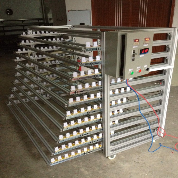 6.本设备制造结构:老化架设计为抽屉式,共设为10层老化,每层可自由升缩观察老化状况是否一切老化正常。
