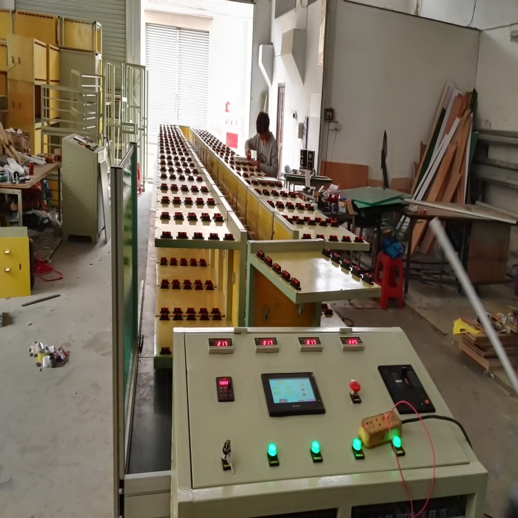 一个高低漫游检测区由PLC编程器自动控制分配电压,共4个调压器,5个老化检测区,全线老化检测采用自动系统老化检测。每个区可自由选择是否冲击检测。检测功能更完善,质量把关更加严格。