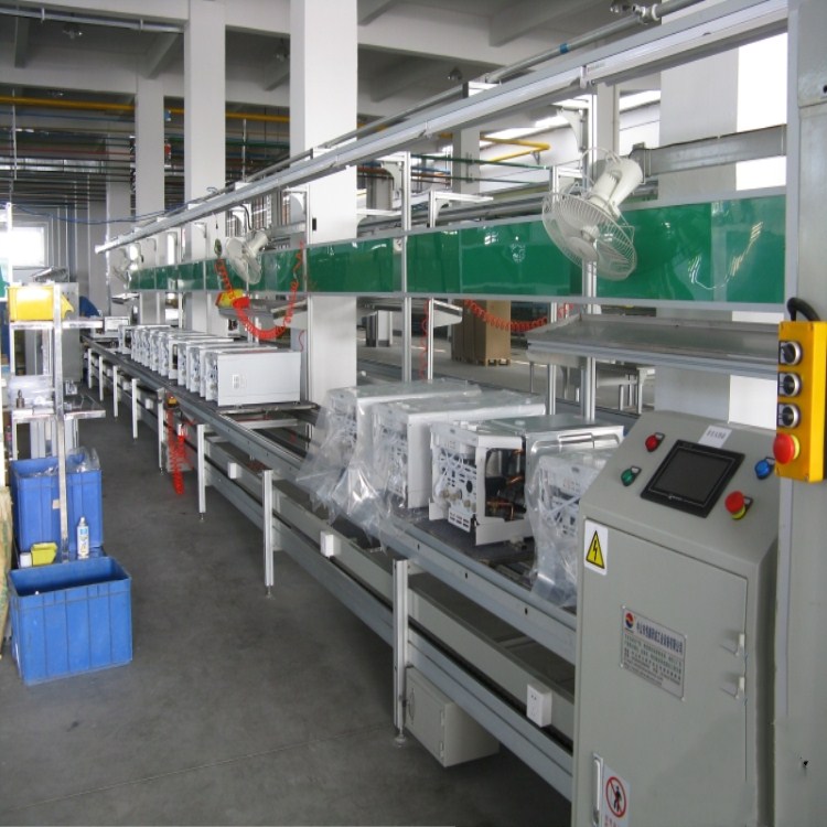 适用范围:自流式输送系统广泛地应用于各种电子电器、机电等行业生产线。倍速链流水线最常用的行业有:电脑显示器生产线、电脑主机生产线、笔记本电脑装配线、空调生产线、电视机装配线、微波炉装配线、打印机装配线、传真机装配线、音响功放生产线、发动机装配线。