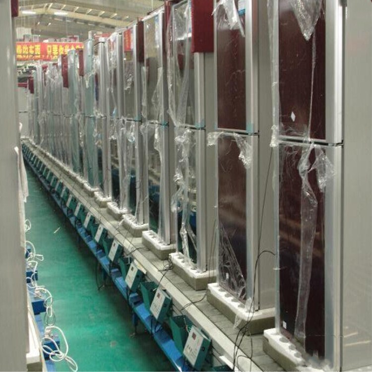 5、可以实现冰箱产线零部件组装输送、门体及箱体发泡、抽真空测试、产品性能检测、成品自动化下线等工序地高效组合,极大的提高生产效率。
