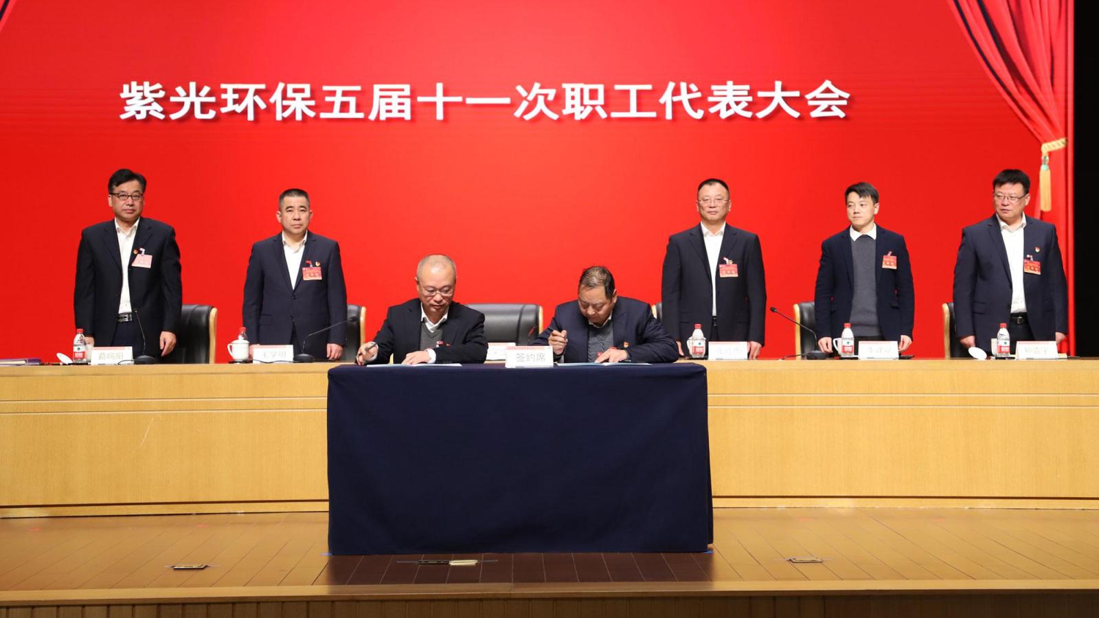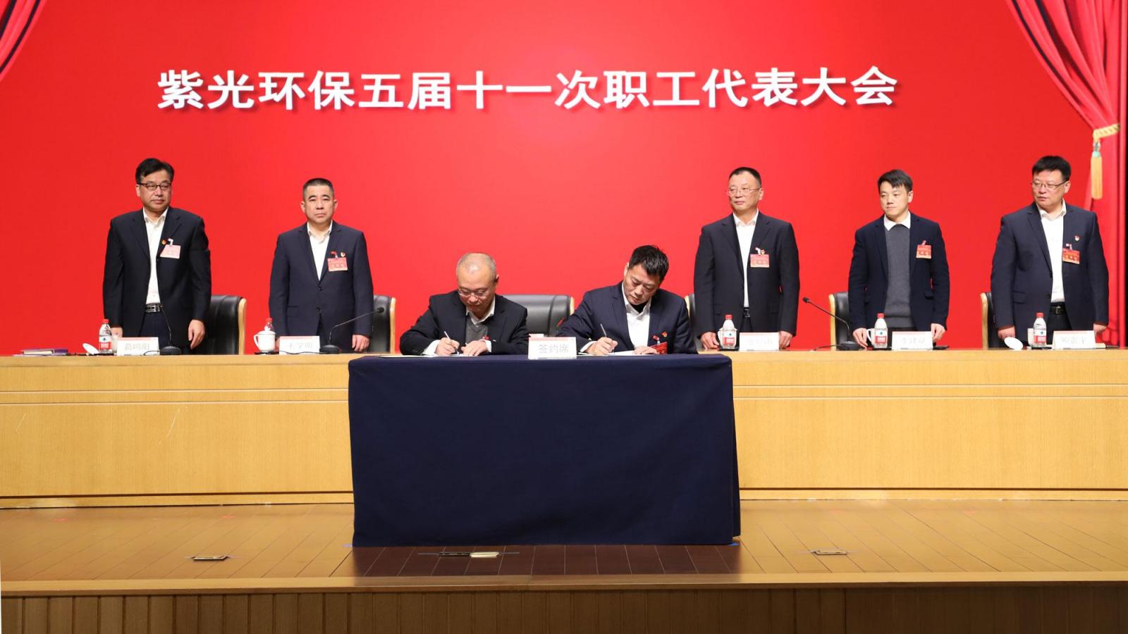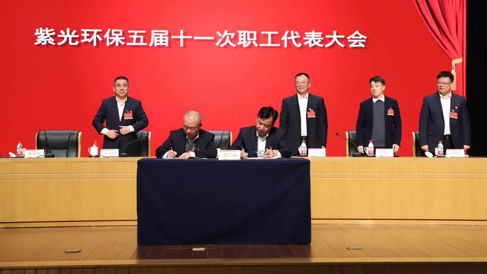 ▲签订紫光环保集体合同