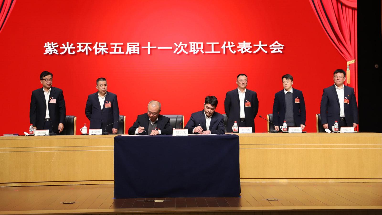 大会审议通过2025年度职工福利费使用决算、2026年度职工福利费使用预算的报告,审议通过2025年度业务招待费使用情况的报告,审议通过职工福利费使用预、决算报告的决议,还审议通过了有关议案。现场签订紫光环保集体合同,与机关第一党支部签订党建责任书,与紫光环保联合党支部签订党风廉政责任书,与运营事业部签订安全生产责任书,表彰2025年度先进集体、个人及星级评定优秀子公司。